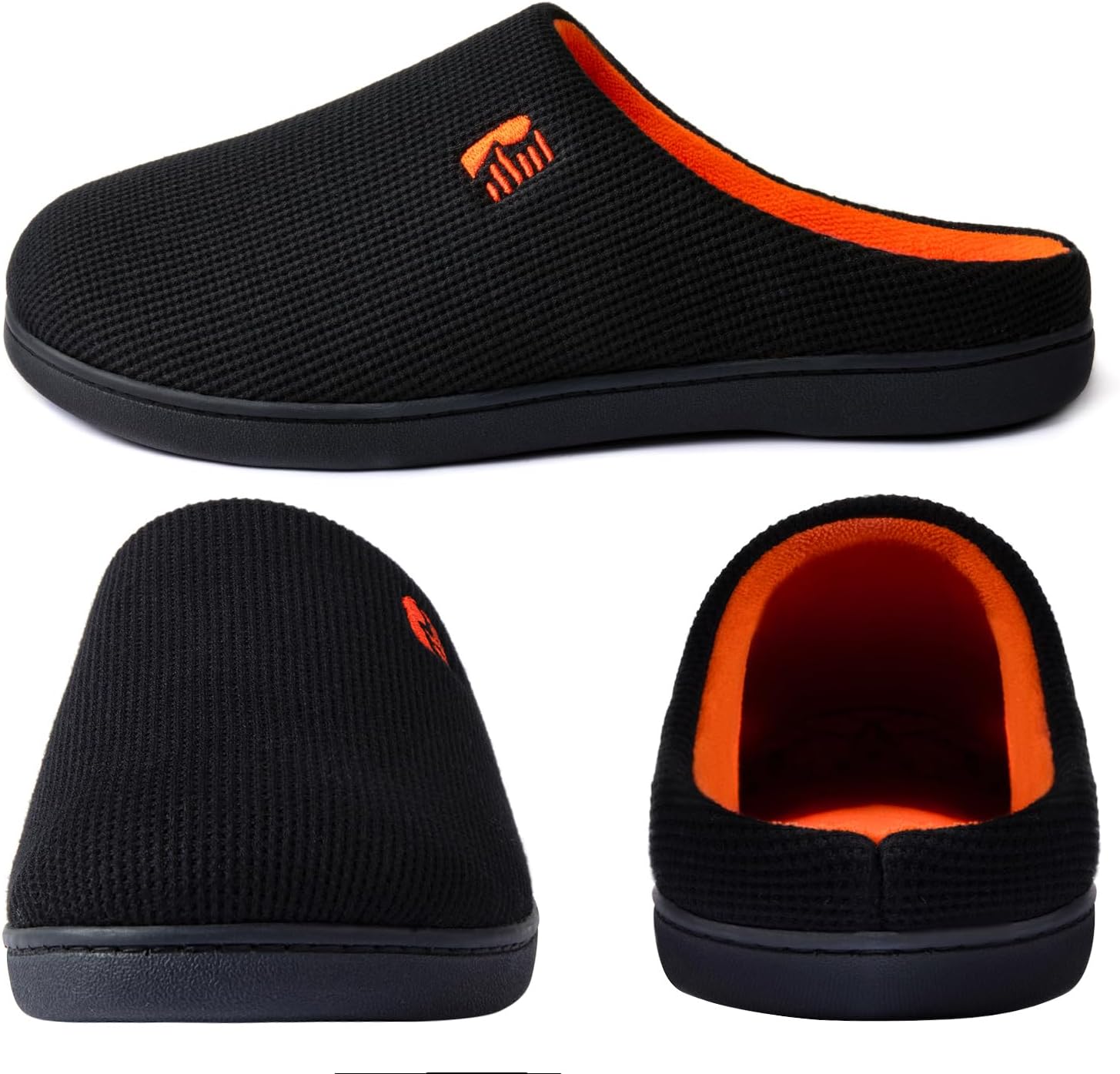 - Open back, slip-on style allows for easy on/off. The fitted upper and back lip help prevent your slipper from flopping off your foot, especially when walking down stairs.