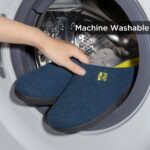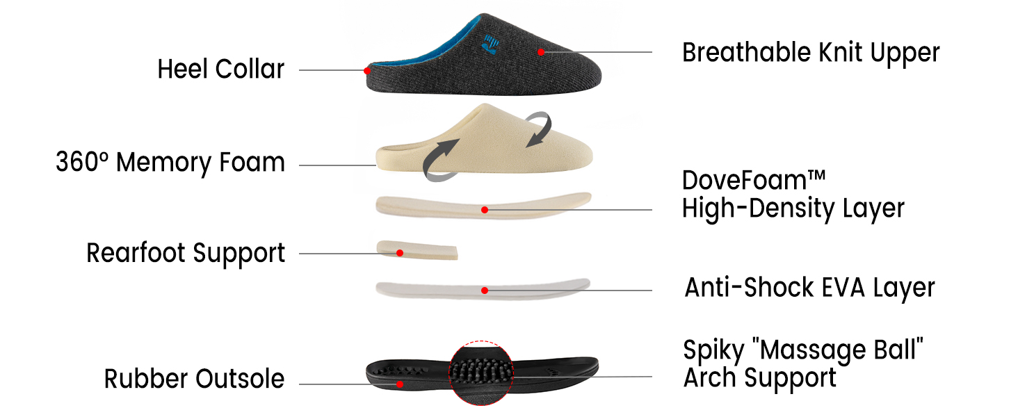 - Sturdy rubber sole with anti-slip traction lets you step outside the house to grab the mail or walk the dog.